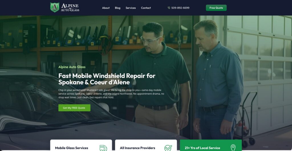 What makes this one especially interesting is how quickly results can show up when the structure is right. Alpine is already earning top visibility for searches like “auto glass Spokane,” “windshield repair Spokane,” and “auto glass replacement Spokane”—the exact queries customers use when they’re ready to book.