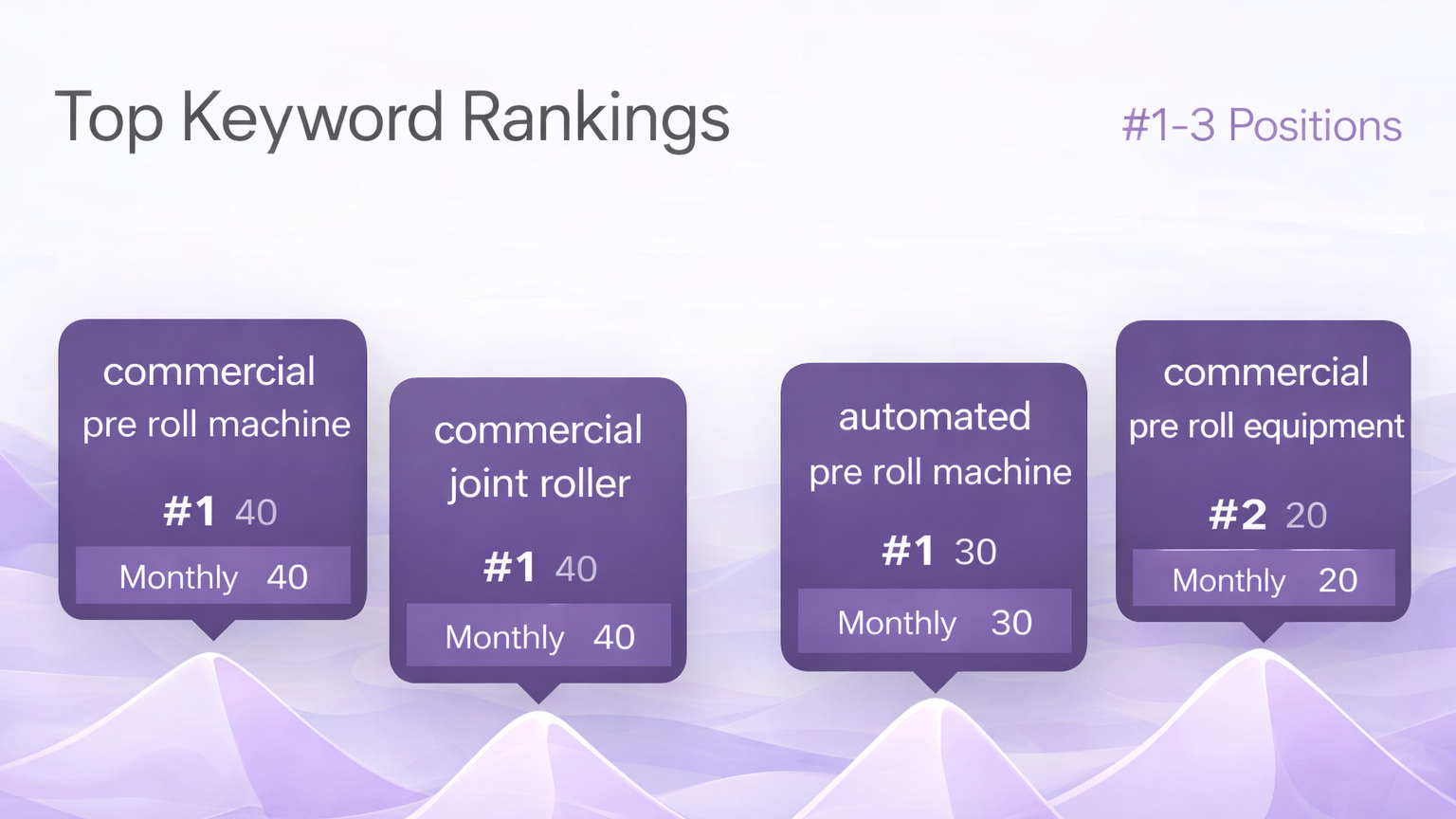 In this market, you’re not competing for attention—you’re competing for purchase intent. Ranking for “what is a pre-roll” doesn’t move the needle. Ranking for commercial pre-roll machines, automated production systems, and industrial workflows is what drives revenue.